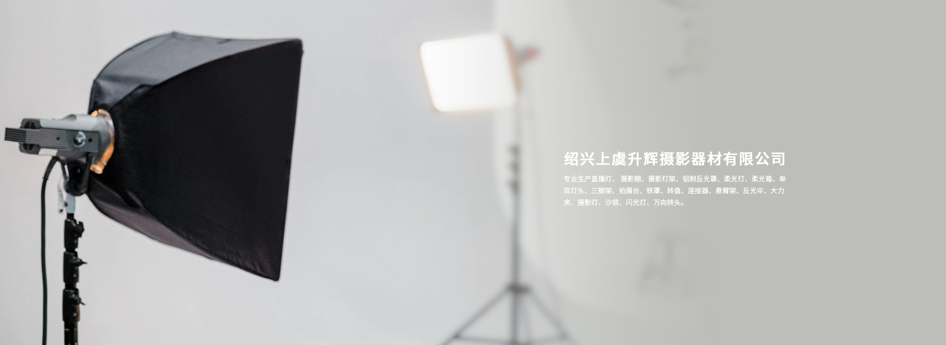 紹興上虞升輝攝影器材有限公司專業(yè)生產直播燈、 攝影棚、攝影燈架、鋁制反光罩、柔光燈、柔光箱、單雙燈頭、三腳架、拍攝臺、鐵罩、轉盤、連接器、懸臂架、反光傘、大力夾、攝影燈、沙袋、閃光燈、萬向轉頭。